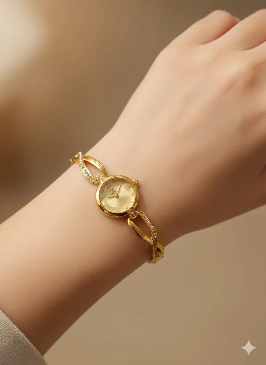 • Elevate your look with this stunning, jewelry-inspired bracelet watch. The delicate round dial is framed by a bezel featuring subtle crystal accents, and is connected to a distinctive band that is part watch, part dazzling bracelet. The band features interlocking, open oval links heavily embellished with brilliant, shimmering crystals for maximum sparkle.